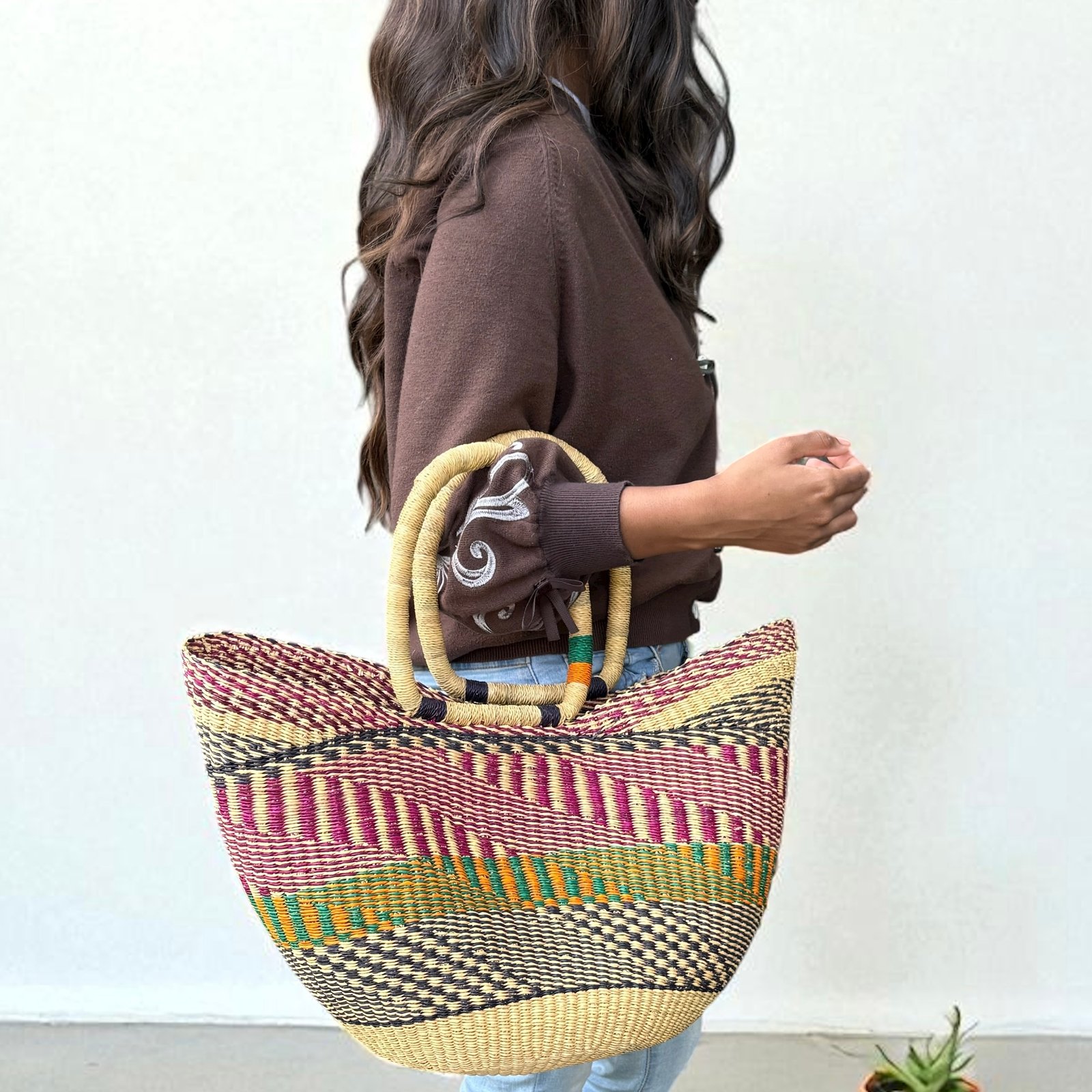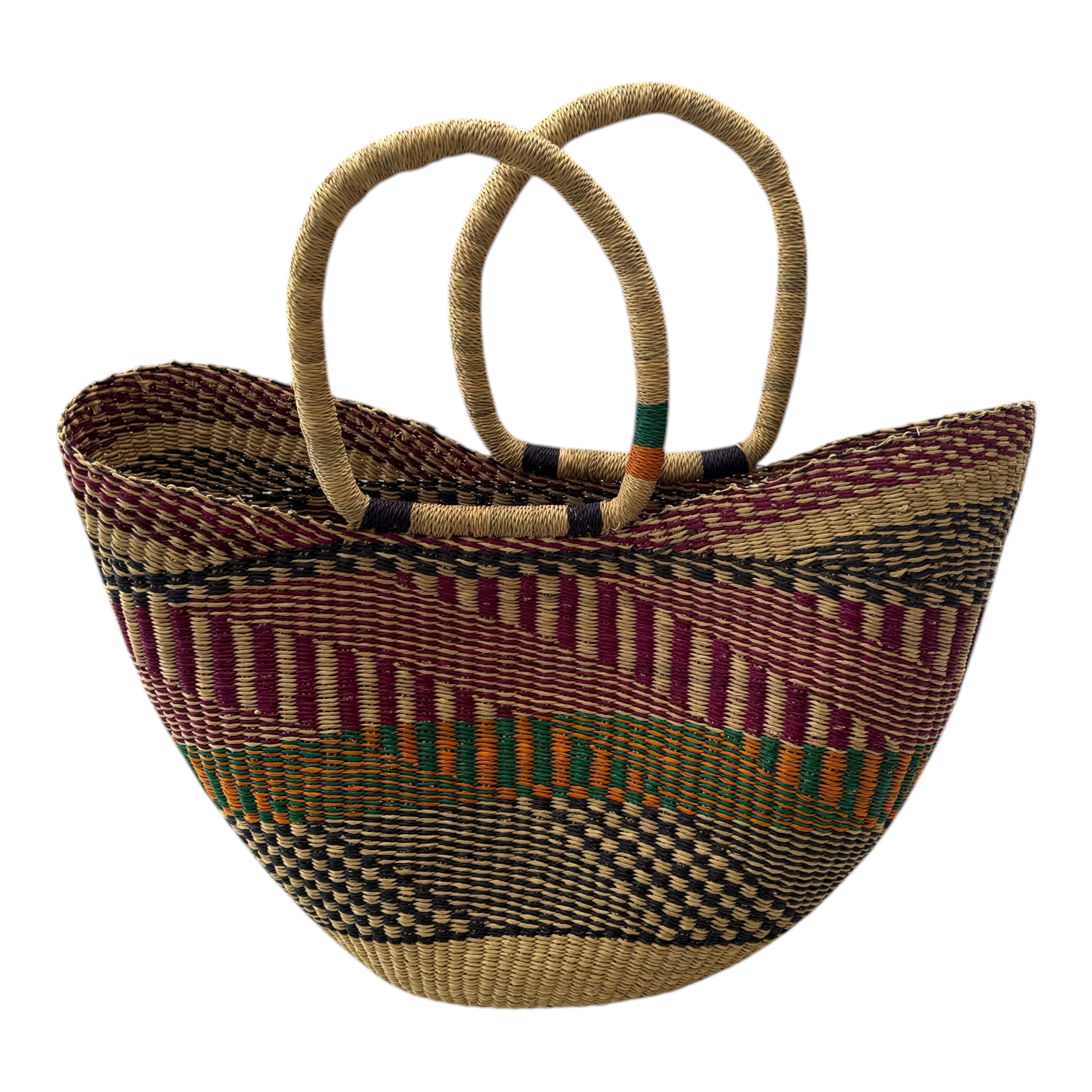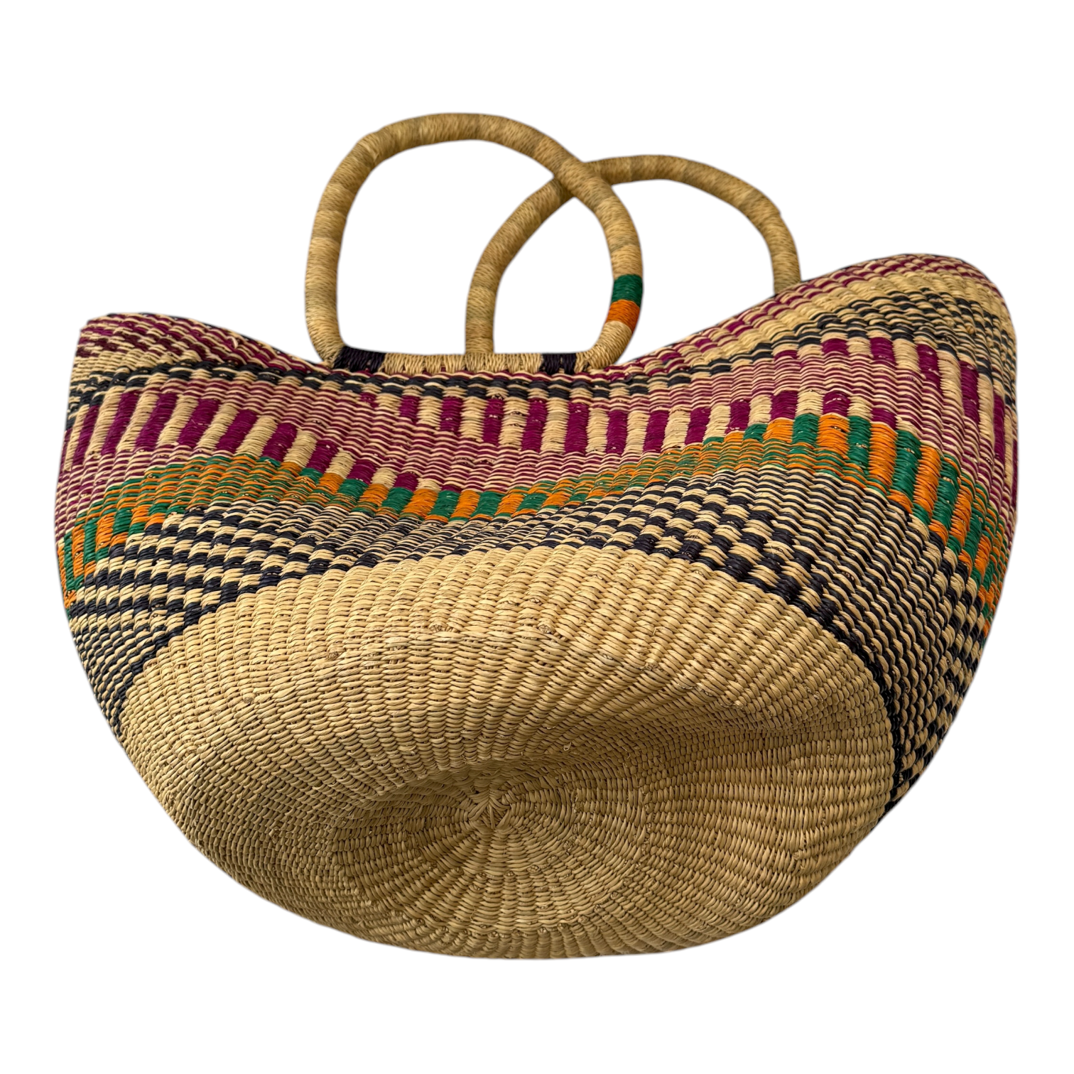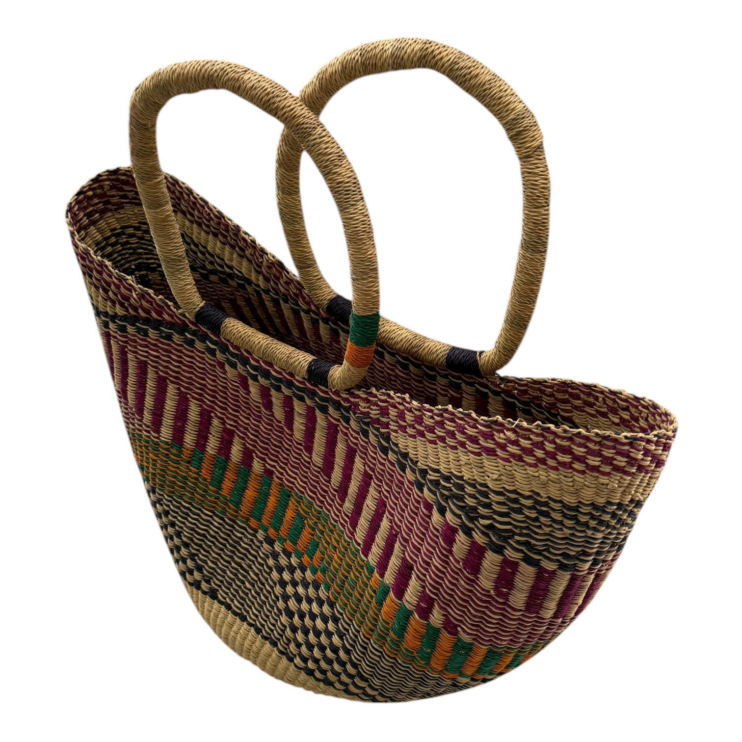 Handcrafted in Ghana, this Large shopping  basket with all natural elephant grass blends tradition, artistry, and practicality. Each piece is woven by skilled artisans, supporting their communities while bringing elegance and function to your home. Perfect for shopping, storage, or decoration, it’s more than a basket — it’s a story you can carry.